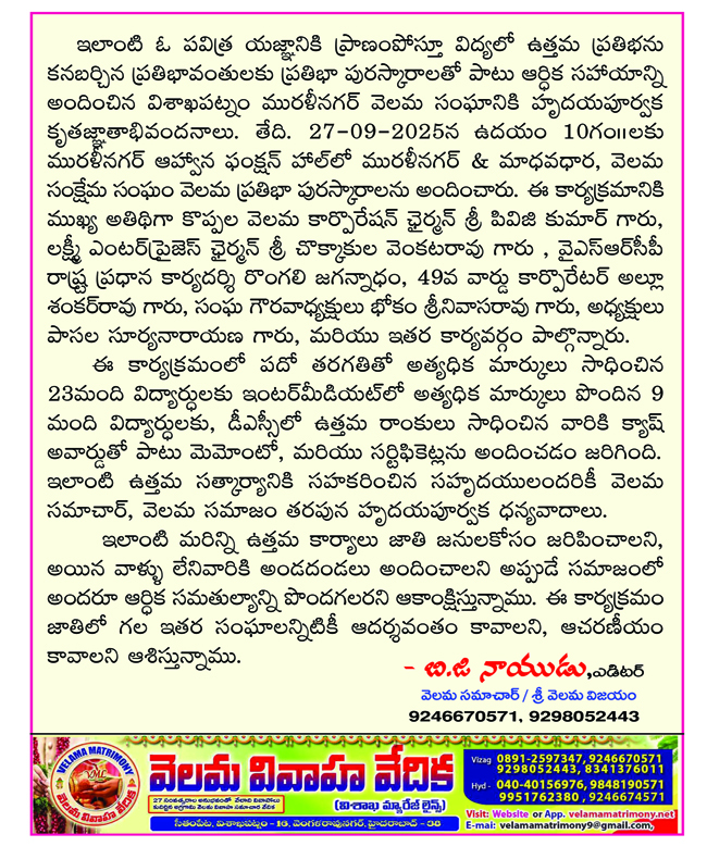 "వెలమ ప్రతిభా పురస్కార్"
