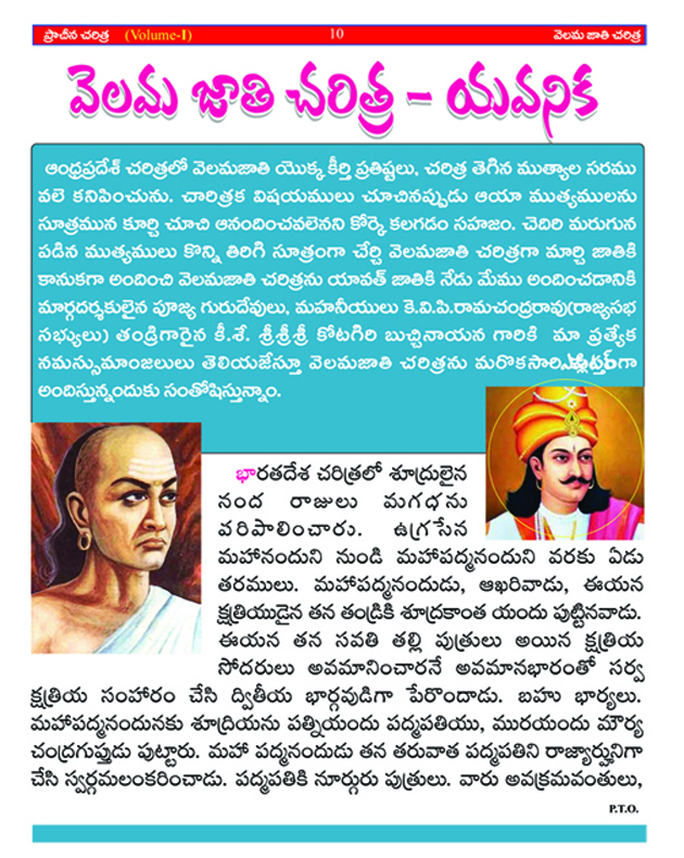 వెలమ ఆది నాయకుడు, చాపకూటితో సమతను నేర్పిన సమతా మూర్తి, సామ్యవాది, నేటికీ పలనాటి కృష్ణుడుగా పూజలందుకుంటున్న మానవ రూపంలో ఉద్భవించిన మహితాత్ముడు శ్రీ శ్రీ శ్రీ రేచర్ల బ్రహ్మనాయుడు ........ |
