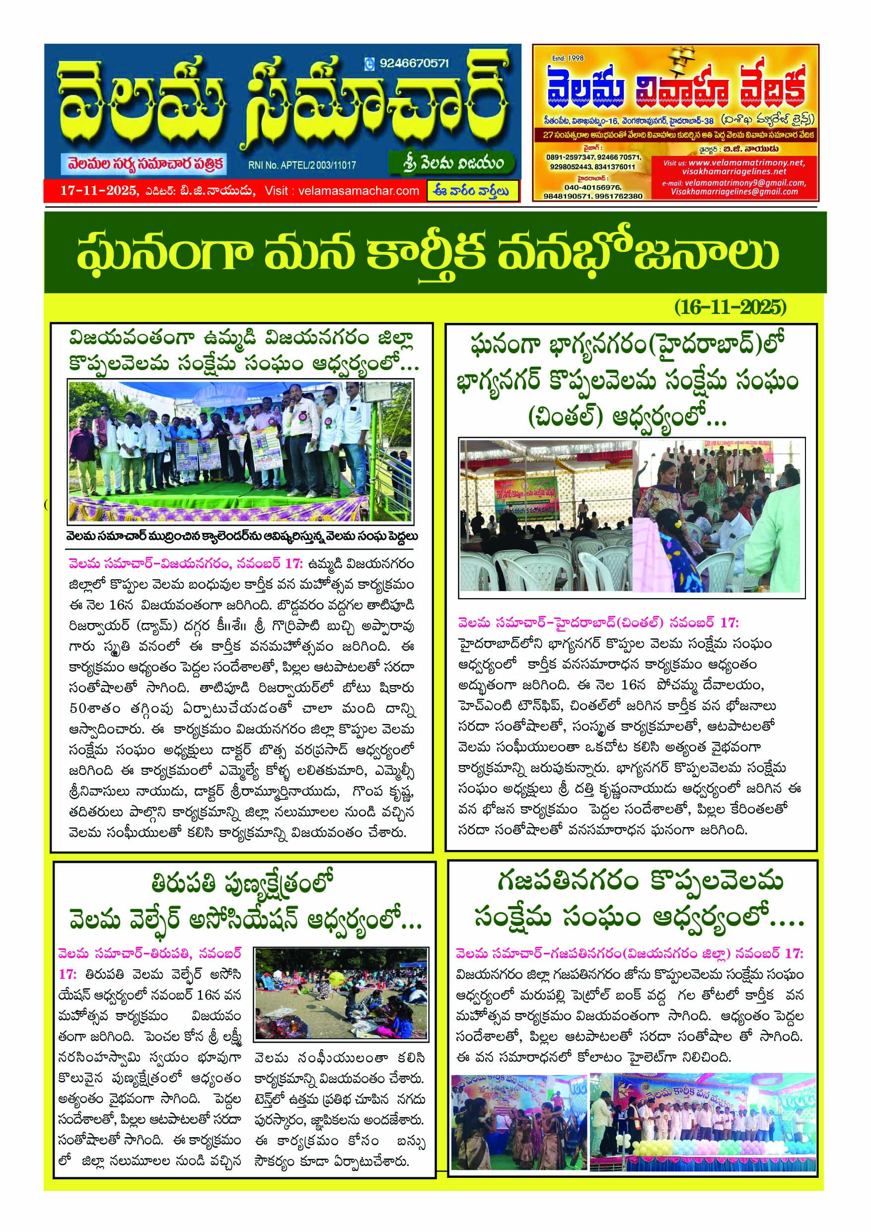 "వెలమ వనభోజనాలు" 16-11-25