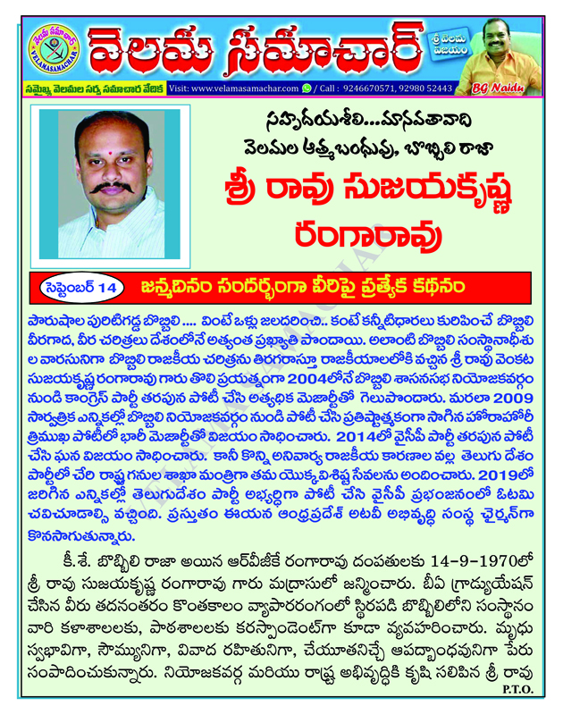 రావు వెంకట సుజయ్ కృష్ణ రంగారావు గారికి